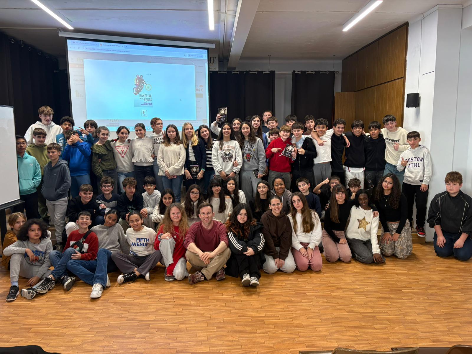 ¡Y cincuenta! Esta mañana he visitado al equipo de 2º del instituto Antoni de Martí i Franquès de Tarragona para charlar sobre Ombres a la foscor. Lo he pasado muy bien, el alumnado me ha transmitido muy buena vibra y las intervenciones han sido muy animadas. Además, todo el mundo ha valorado muy bien la novela. El momento más emotivo se ha producido cuando una chica me ha explicado que antes leía mucho, pero que perdió la ilusión por hacerlo y, desde que se ha leído mi novela, se le han despertado las ganas de volver a leer. ¡Qué buena noticia! ¡Gracias por vuestra acogida! Y gracias, Esther y Olga, por vuestra bienvenida. ¡Un besito!