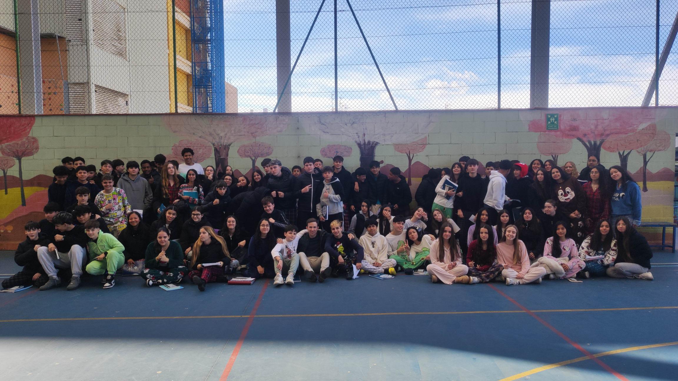 ¡Y cuarenta! Esta mañana he visitado a la promoción de 3º del centro de estudios Jaume Balmes de L’Hospitalet de Llobregat para charlar sobre Extraños en un aeropuerto. Me he encontrado ante noventa alumnos que venían en pijama por motivo del Carnaval. Incluso Ángela, la profesora de la materia, también vestía pijama. Reconozco que me ha costado captar la atención del público porque siempre había un runrún de trasfondo, aunque he conocido a varios alumnos muy cercanos e interesados ​​durante la firma de los libros. ¡Gracias por vuestra cercanía! Y gracias, Ángela, por tu apuesta. Con ganas de volver a finales de curso para charlar sobre El torneig dels núvols. ¡Hasta pronto!