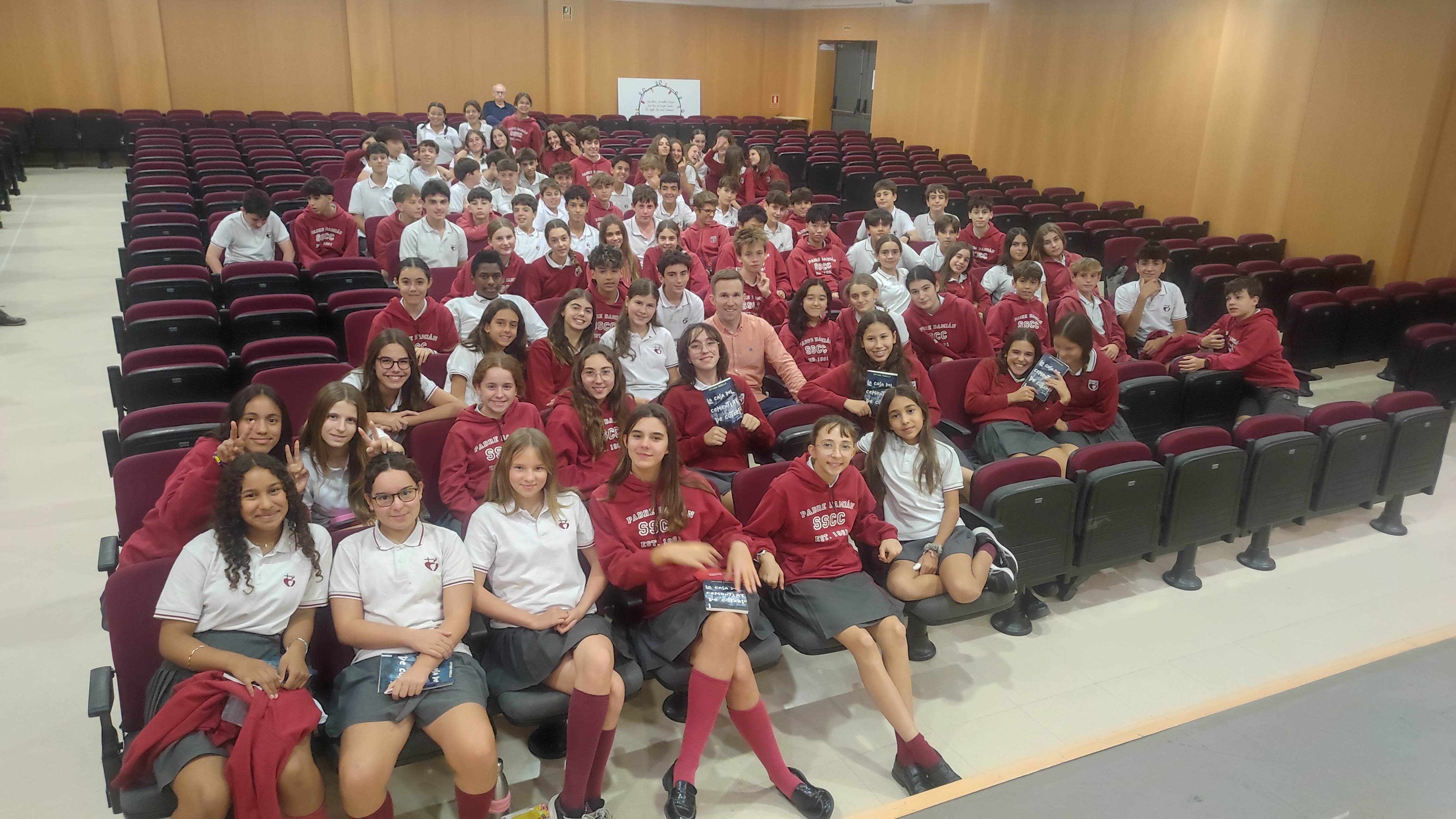 ¡Y cuatro! Esta mañana me he encontrado con los chicos de 2º del colegio Padre Damián Sagrados Corazones de Barcelona para charlar sobre El Chatarrero. El alumnado había leído la novela en verano y había realizado un trabajo grupal, por lo que tenían el argumento muy fresco y muchas preguntas han girado en torno a los personajes y la trama. Me ha sorprendido gratamente que algunos alumnos se hayan leído otras novelas mías voluntariamente, como Sombras en la oscuridad, Fuera de guion o Extraños en un aeropuerto. Puedo decir que el encuentro ha sido un éxito. Gracias por vuestro cariño y entusiasmo. Gracias al profesorado por vuestra apuesta. Y gracias, Joan, por venir en representación de la editorial. ¡Hasta la próxima!