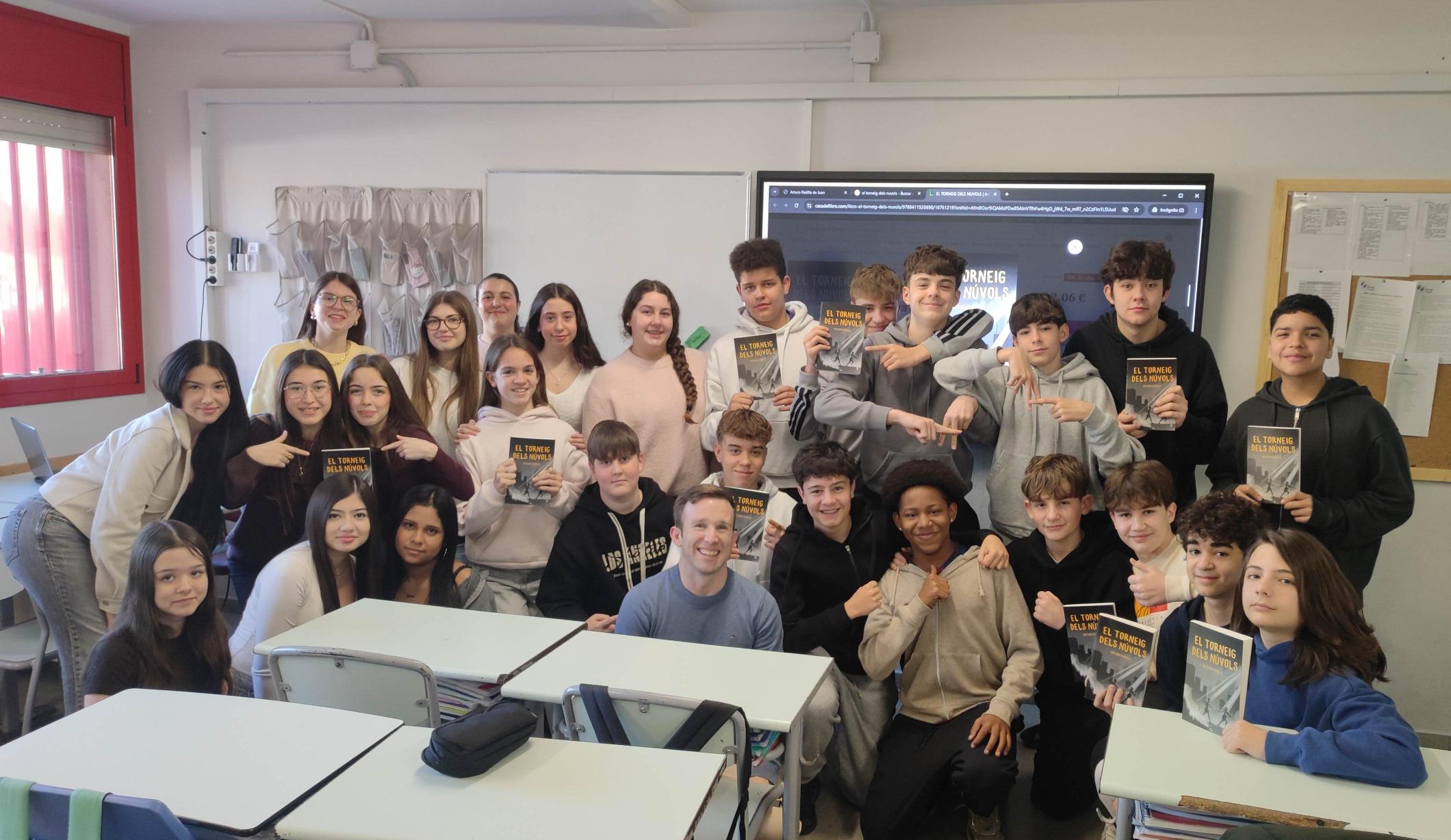 I seixanta-vuit! Aquest matí he visitat la gent de 2n i 3r del col·legi Tarrés de Sabadell per xerrar sobre Entre dos blaus i El torneig dels núvols respectivament. Els lectors de 2n m’han escoltat amb atenció i respecte, encara que els ha fet vergonya intervenir. Els de 3r han estat més participatius i s’han interessat per la construcció d’alguns personatges de la novel·la, com ara la Bàrbara o el Borja. També m’han transmès que voldrien que l’Aaron i l’Èrika acabin junts. Gràcies, Montserrat, per la teva aposta i per l’estoneta del cafè. I gràcies, Viviana, per acompanyar-me en representació de l’editorial. Una abraçada!