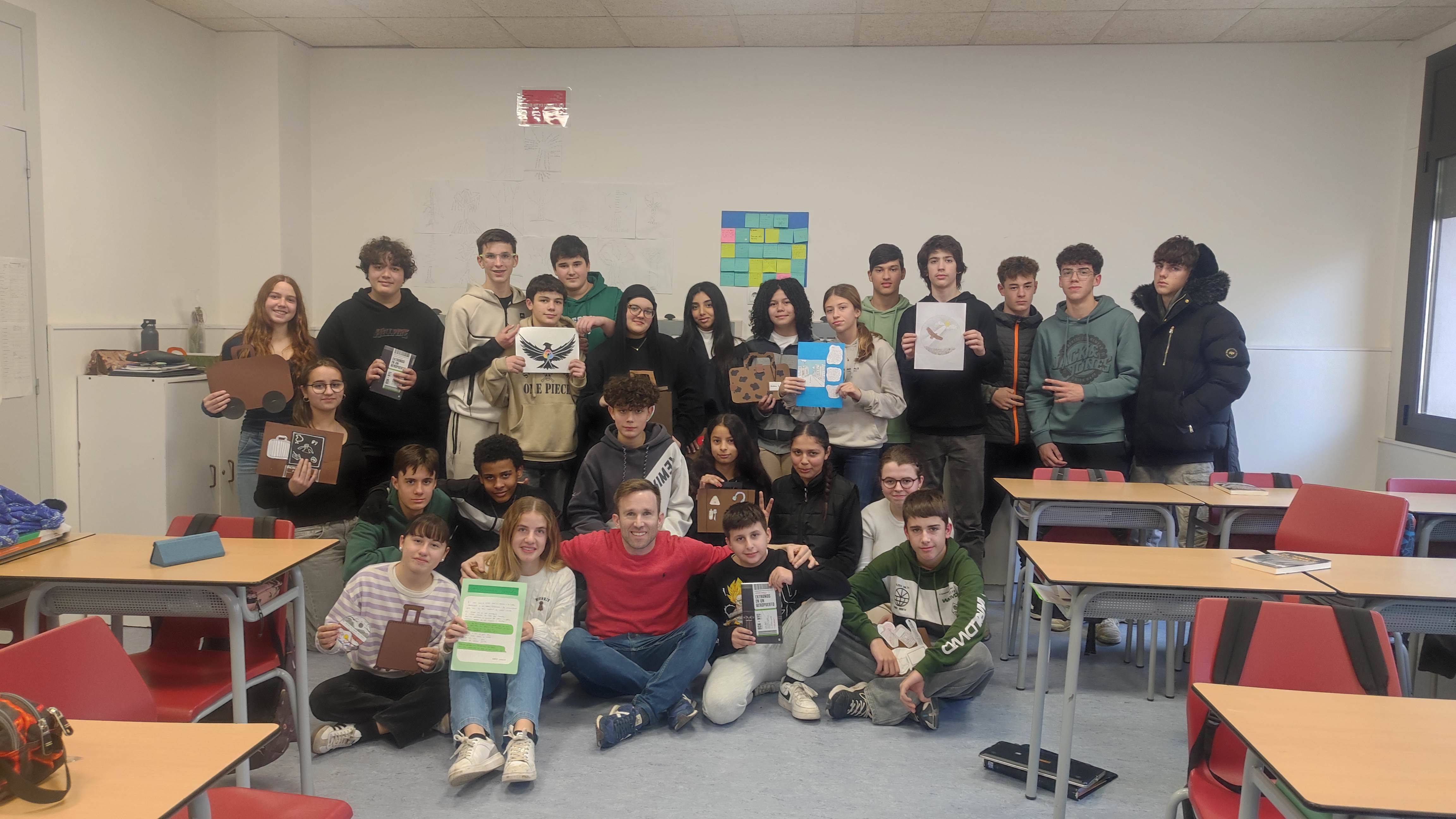 I divuit! Aquesta tarda he visitat la classe de 3r de l’escola Vedruna d’Artés per xerrar sobre Extraños en un aeropuerto i El torneig dels núvols. L’alumnat s’ha mostrat molt atent, agradable i receptiu a les meves explicacions. M’ha sorprès que un parell d’alumnes havien visitat la colònia minera de Cercs i havien entrat a la mina de carbó, lloc que em va servir d’inspiració per crear la ciutat de Mangore. Haig de reconèixer que tenia força curiositat per saber quina de les dues novel·les els havia agradat més i quan he fet una enquesta, set estudiants han preferit la història dels corredors i catorze, la novel·la dels passatgers a l’aeroport. La profunditat dels personatges d’aquesta última ha decantat la balança. D’altra banda, m’ha fet molta il·lusió que l’alumnat hagi elaborat un treball artístic sobre les meves novel·les, com ara una maleta de cartolina, la reescriptura d’algun capítol o un pòdcast sobre la cursa. Quins artistes! Gràcies, Patricia i Isa, per treballar les meves novel·les amb tanta estima des de l’assignatura de Català i Castellà respectivament. I moltes gràcies per l’ampolla d’oli! Una abraçada!